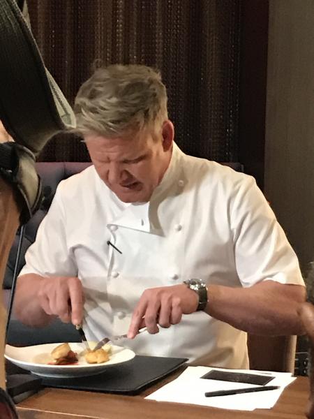 Even more surprising, Chef Ramsay did not portray his Hell's fury when he tasted each dish. Rather, he took notes and gave each student compliments and constructive criticism. His reactions were what we've seen when he's judging kids' competing on TV.