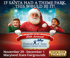 The Festival of Trees is an annual holiday-themed family event that benefits Kennedy Krieger Institute. The focal point of the event is the display and sale of more than 800 spectacular holiday trees, wreaths and gingerbread houses created by local designers, artists, florists, individuals, schools and community groups. Additional attractions include live holiday entertainment, and seasonal merchants. One of the event’s most popular areas is SantaLand, an indoor carnival-style experience for children featuring crafts, games and Santa visits, and pony, carousel and train rides.
