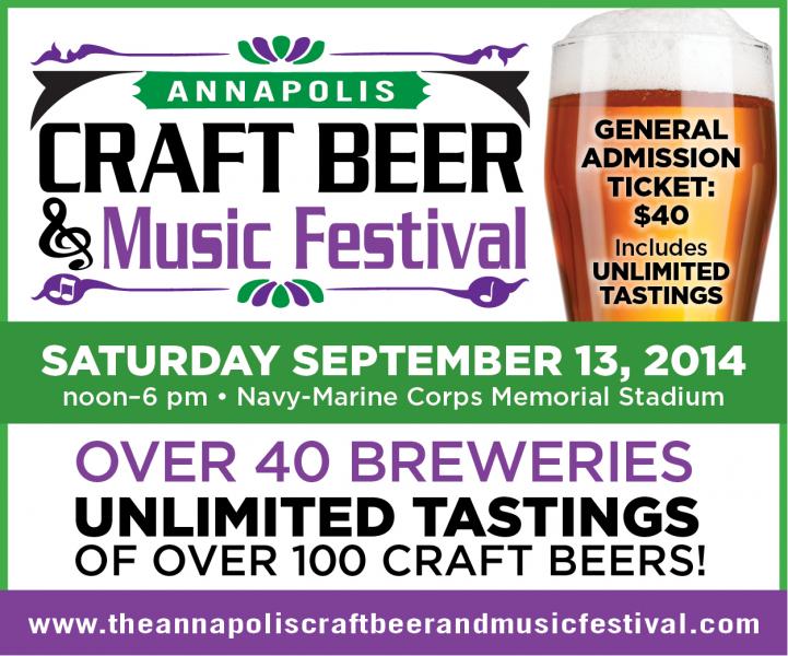 Having just spent the weekend shopping and dining around the Annapolis City Dock, I was pleased to see the return of one of the famed citywide festivals- 3rd annual Annapolis Craft Beer and Music Festival Saturday, September 13, 2014, noon-6 pm at The Navy-Marine Corps Stadium in Annapolis, Maryland.