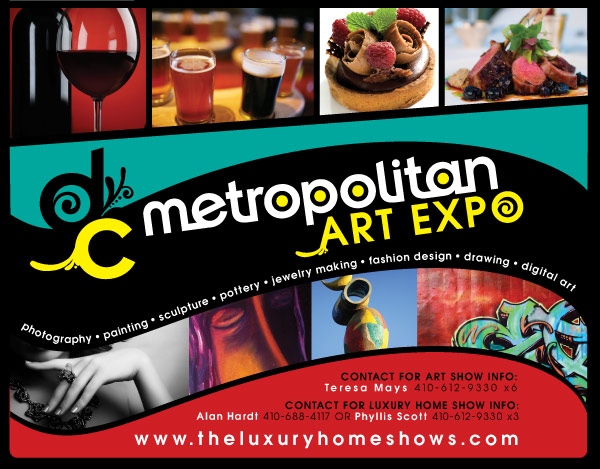 The DC Metropolitan Art Expo will be held simultaneously with the DC Metropolitan Food, Libations & Luxury Home Show. Admission permits entry to both shows, which feature leading-edge luxury both large and small designed to create a highly individual retreat.