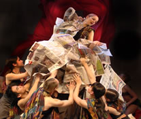 Jason Garcia Ignacio City Dance: "The Mountain" is rooted in Filipino folk dance and resonates with socioeconomic-environmental awareness. The piece was inspired by Mount Pinatubo, a live strato-volcano in the Philippines which erupted in 1991 – juxtaposed with a landfill trash heap in Metro Manila, dubbed "Smokey Mountain." The electronic score incorporates recordings of volcano seismic waves.