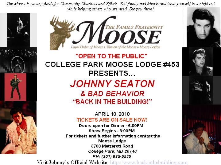 JOHNNY SEATON - THE COLLEGE PARK MOOSE PRESENTS.....