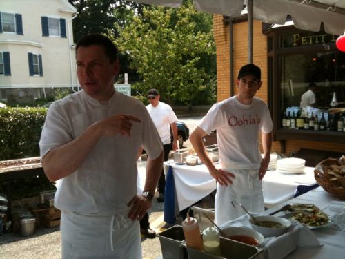 Chef Tony Foreman and a staff of about 6 gents manned the outdoor kitchen that presented itself under, not a tent, just the hot sun--heading the main course grilling station menu seen below at LES GRILLADES section.