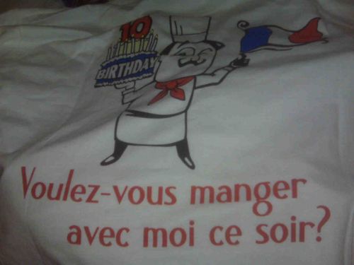 Special tshirts were made with a, er, tongue and cheek message. We love it! "Will you eat with me tonight?"
