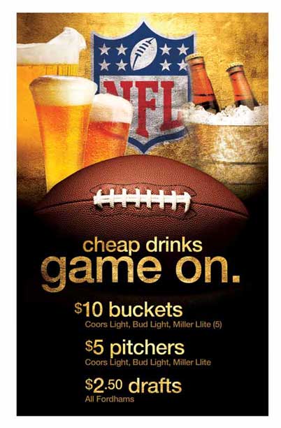 During Sunday and Mondays games | Must be able to see T.V. for specials