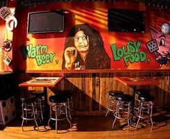 With all the frenzy of Fright Night, you surely won’t notice Porky’s whacky charm and décor! The twists and turns of cow leather seating, crazy signs, abstract colors and fresco cartoon characters serves as the perfect backdrop for Hallows night mischief making at its finest.