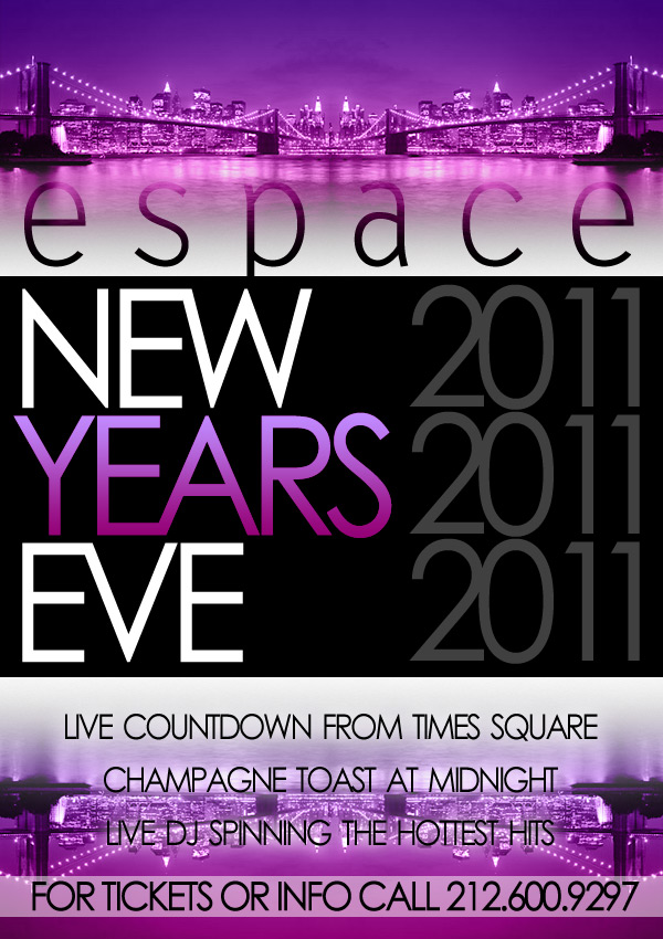 Times Square's finest and most exclusive venue, Espace will host this year’s #1 New Year’s Event – right in the heart of the action! A chic and elegant party, Espace brings to Times Square on New Year’s Eve what Capitale, its sister event space, has been delivering to the downtown scene for many years. A private event space for many of your favorite celebrities, including Beyonce, Rachel Zoe, Tom Cruise, Katie Holmes, CariDee English, Charlotte Ronson, and all the Real Housewives of NYC, New Year’s Eve at Espace is set to be Manhattan’s HOTTEST party to ring in 2011. Live it up as your favorite “scenesters” do – a 6 hour open bar from 9pm-3am, complimentary hors d’oeuvres, and live countdown with champagne toast as the clock strikes midnight, all while enjoying the tunes the LIVE DJ spinning all of your favorite hits. VIP Tables are available, complete with bottle service, individual hors d’ouevres platters, and cocktail waitress service. What is being deemed “A NYE Event for the NYC Crowd,” Espace is where the party will be for the Real NYC Experience.