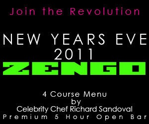 All for one, and one for all. Spread the propoganda, Zengo is the most deliciously decadent nightlife experience of 2011. You want some club with your supper, some vibe with your dining, and some party with your dinner. Zengo, the mega Asian-Latin fusion restaurant from celebrity chef Richard Sandoval is the ultimate New Years Eve celebration.