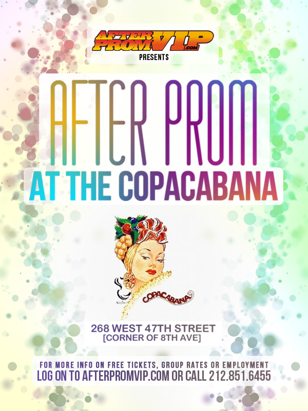 For Copacabana Discounted After Prom tickets, visit http://www.afterpromvip.com/index.php?page=copa or Call 212-851-6455