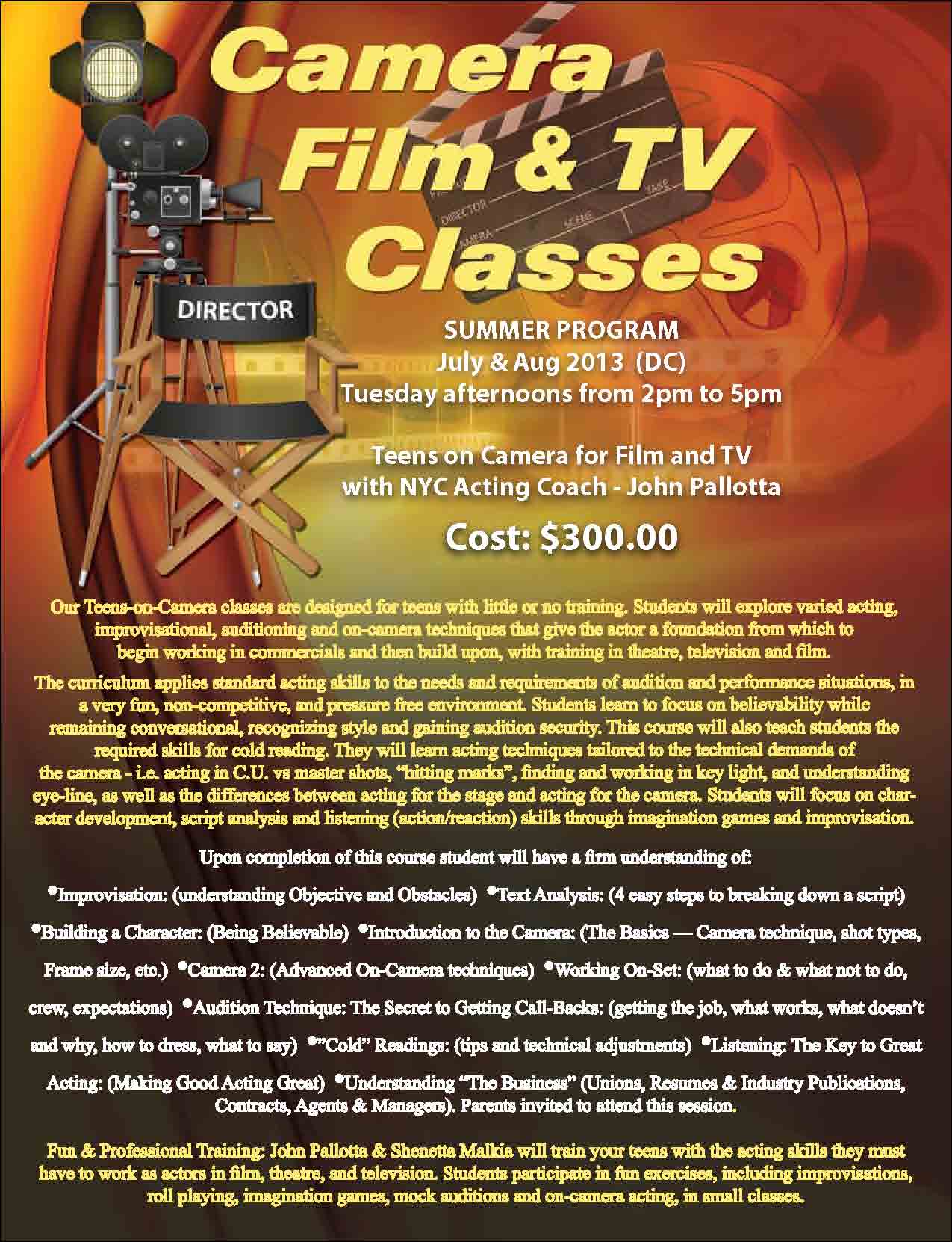 Our Teens-on-Camera classes are designed for teens with little or no training. Students will explore varied acting, improvisational, auditioning and on-camera techniques that give the actor a foundation from which to begin working in commercials and then build upon, with training in theatre, television and film.