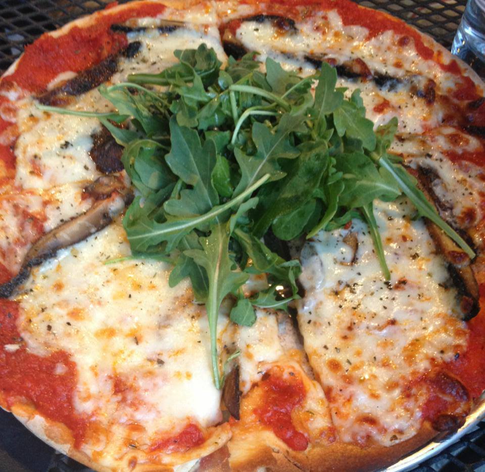 FLATBREAD (PIZZA) with portobella mushrooms, topped with arugula ($10). Served piping hot, the flatbread did not disappoint and was indeed served on a thin crust.
