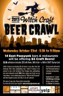 Grab your broomstick and fly around East Passyunk Avenue Business Improvement District (EPABID) during the fourth annual Witch CRAFT Beer Crawl on Wednesday, October 23, 2013, from 5:30pm to 9:30pm. Enjoy seasonal craft beers bubbling up in cauldrons at a record-setting 14 bars and restaurants. Tickets are $6.66 and include $3.00 craft beers, a witch hat and a Witch CRAFT stamp card. Earn a stamp by purchasing a craft beer, food or other beverage at participating locations. Collect five or more stamps to be entered to win a gift certificate prize package worth $350.00. Scare up your finest witch’s garb for a chance to win title of “Witch of East Passyunk” and “Most Original Costume.” Passyunk Gardens will cast its own spell with natural witches brew and other tricks and treats. Registration takes place at newly opened Garage (1231 EPA) from 5:30pm -7:00pm. Thanks to Witch CRAFT sponsors Boston Beers, Origlio Beverage, Drink Philly, Philebrity, Pretzel Crisps, UBER and Yelp. Tickets are on sale now at www.bit.ly/passyunkwitch. Proceeds benefit EPABID's cleaning and greening programs.