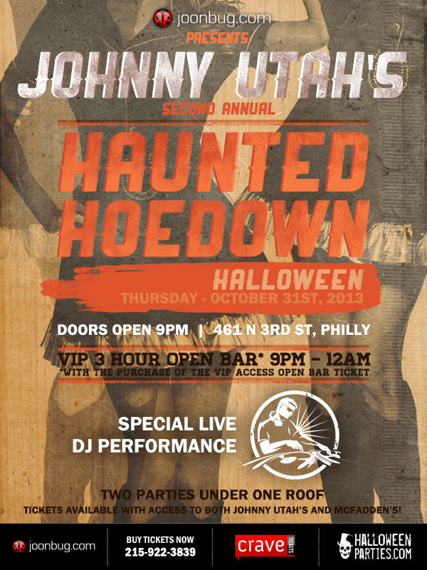 Strap on you wicked cowboy boots and party this Halloween at Johnny Utah’s Philadelphia for our Haunted Hoedown party!