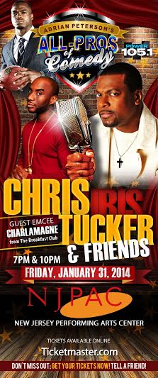 Adrian Peterson's All-Pros of Comedy and Power 105 invite you to see CHRIS TUCKER and special guest  (2 shows) at NJPAC in Newark, Tickets going fast, Reserve Now at www.Ticketmaster.com