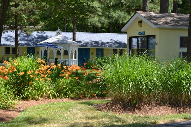 Previously a little known motel under a different name and ownership, Meris Gardens is now a quaint bed and breakfast in a delightfully peaceful wooded setting with only a 15 minute walk to the beach, or to all of the shops and restaurants along the main drag.