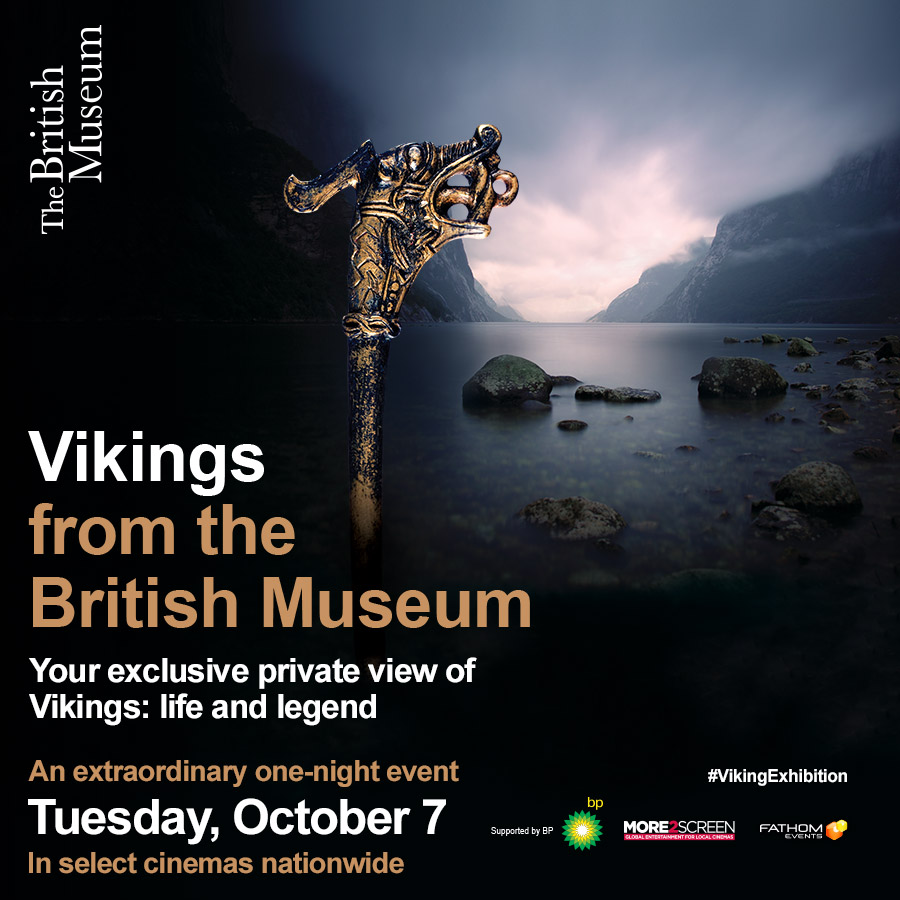 This exhibition offers cinema audiences an exclusive private view of the BP-sponsored exhibition Vikings: Life and Legend. Introduced by historians and broadcasters Michael Wood and Bettany Hughes, and featuring Exhibition Curator Gareth Williams and British Museum Director Neil MacGregor, this showcase  will take the viewer through the exhibition, getting up close to objects and exploring the global contacts of the Vikings –  ships and swords, burials and beliefs, language and legacy. The broadcast also explores how we are still connected to the Vikings, through our languages, our poetry, our personal and place names – even our DNA. With practical demonstrations and stunning close-up photography of Viking objects in the exhibition, this program is a reminder of how the Vikings have shaped our modern lives across four continents, yes, including North America.