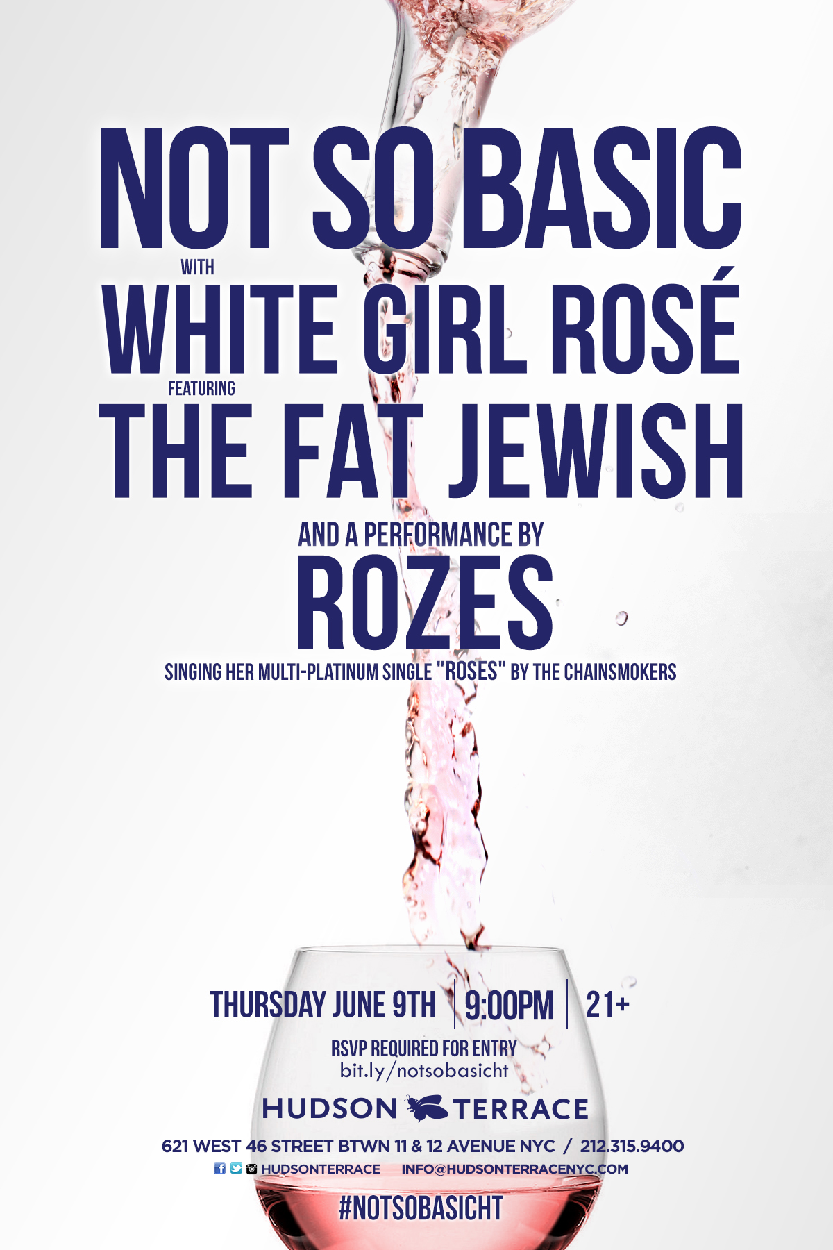 This ain't your basic Thursday - we're kicking off rosé season with the king of the internet, The Fat Jewish, on June 9th! Join us as we launch his White Girl Rosé on the Hudson Terrace rooftop, ending with a special performance by Rozes of The Chainsmokers.