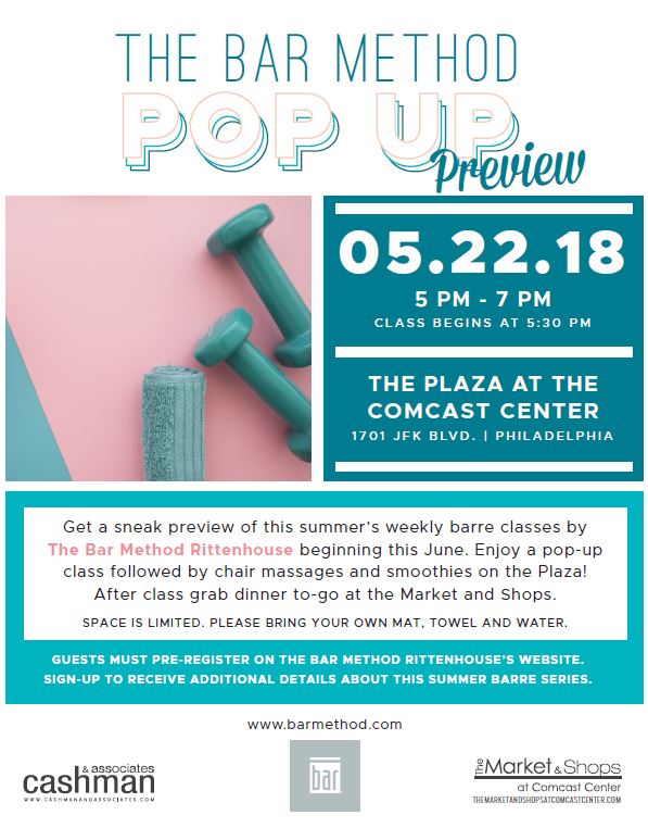 Get a sneak preview of this summer’s weekly barre classes by The Bar Method Rittenhouse beginning this June. Enjoy a pop-up class followed by chair massages and smoothies on the Plaza! After class grab dinner to-go at the Market and Shops. Space is limited. Please bring your own mat, towel and water.