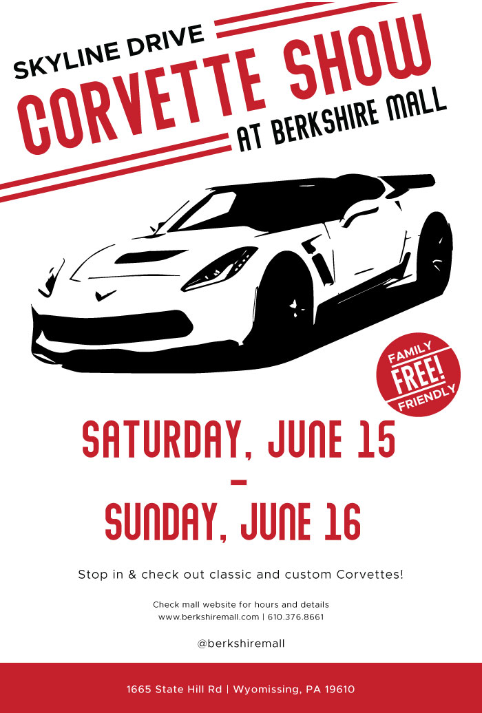 Vroom vroom! Don’t miss the Skyline Drive Corvette Show returning to the Berkshire Mall on Saturday, June 15 and Sunday, June 16. Stop by to check out the line-up of classic and custom Corvettes.