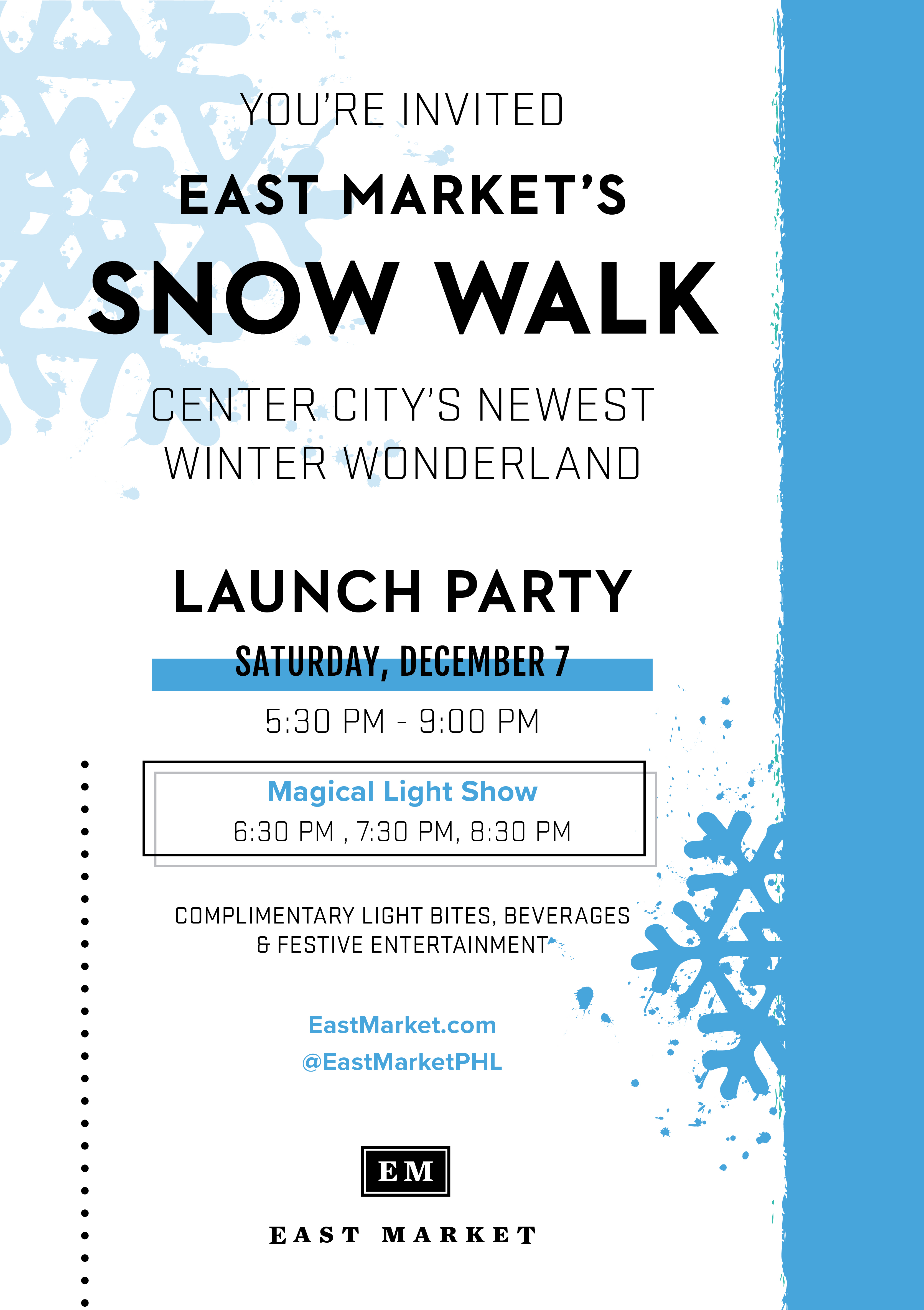 On Saturday, December 7, East Market will celebrate the launch of its inaugural Snow Walk experience, which will transform East Market into a magical winter wonderland as hundreds of LED lights converge with a 35-foot tree to create a synchronized light show. During the free family-friendly event, attendees can enjoy live entertainment by the Philadelphia’s Girls Choir and DJ Dom McGraw, seasonal beer tastings by Iron Hill Brewery, warm treats from Pitruco Pizza and La Chocolatera, along with a snow chalet filled with free lite bites, giveaways and more!