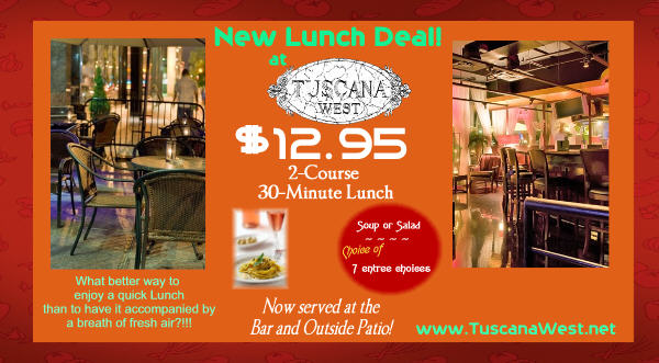 Come and Enjoy a 30 Minute Lunch at Tuscana West!